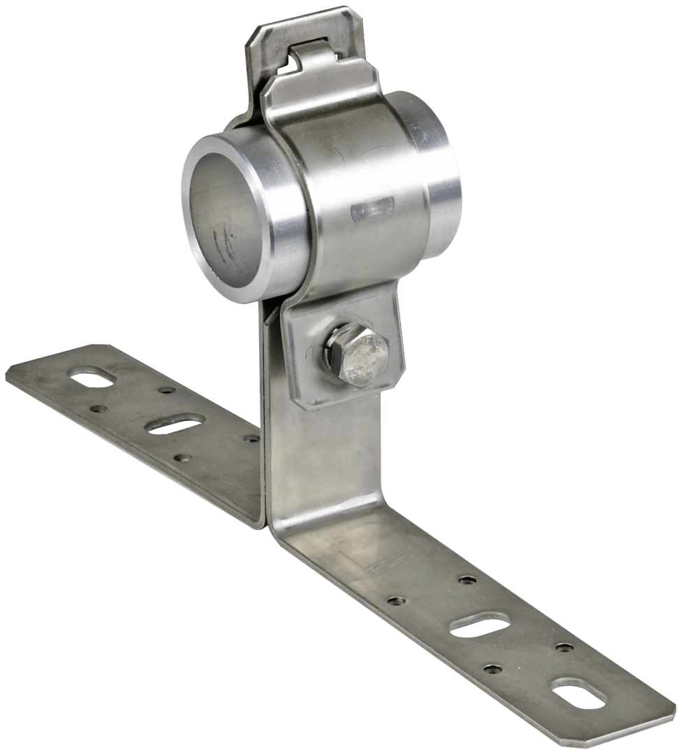 Angolare di fissaggio per il montaggio di tubi portanti (D50 mm) alla costruzione da proteggere. Esecuzione per il fissaggio a parete.