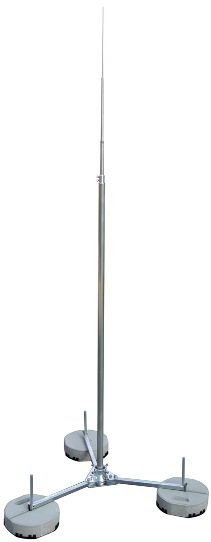Asta di captazione indipendente, con tripode pieghevole, provata secondo CEI EN 62561-(1+2). Per la protezione di grandi costruzioni sul tetto e la possibilità di adattamento all'inclinazione del tetto fino a max 10°. Le aste di captazione sono dimensionate conformi all'Eurocode per raffiche di vento max. 187 km/h. Esecuzione con altezza di 4000 mm, nella fornitura è compreso il morsetto di collegamento per i conduttori tondi 6-10 mm.