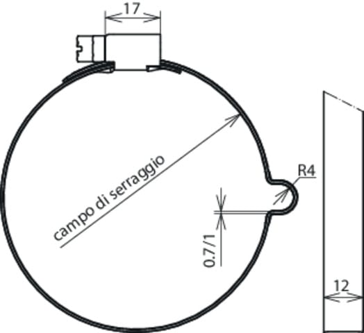 Staffa portafilo per la posa di calate su pluviali. Esecuzione tipo PPS con vite perpetua e nervatura, posa fissa del conduttore.