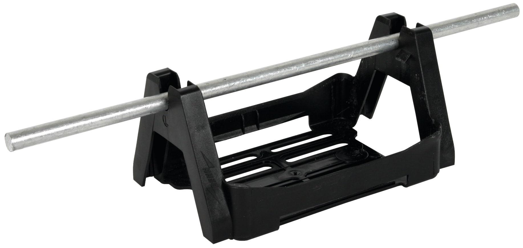 Staffa portafilo con due bloccaggi per filo tipo KF2 per il fissaggio su strisce di guaina (spessore fino a 5 mm), saldata oppure incollata alla guaina. Per il fissaggio di conduttori tondi con posa libera del conduttore su tetti piatti. Esecuzione con piastra di base in plastica resistente alle intemperie, stabilizzata raggi UV e senza alogeni.