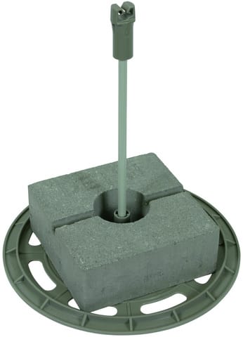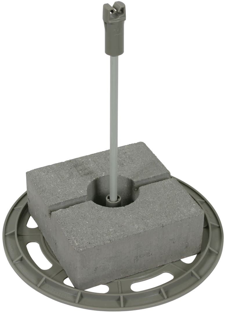 Staffa portafilo per tetti DEHNiso per il rispetto della distanza di separazione secondo la norma DIN EN 62305-3 (VDE 0185-305-3) per la posa di conduttori su tetti piani. Distanziatore in materiale plastico rinforzato con fibre di vetro (PRFV) D10 mm, stabilizzato ai raggi UV, colore grigio chiaro, coefficiente di materiale km = 0,7. Versione con zoccolo in cemento e piastra di base, per conduttori tondi 8 mm (posa libera del conduttore).