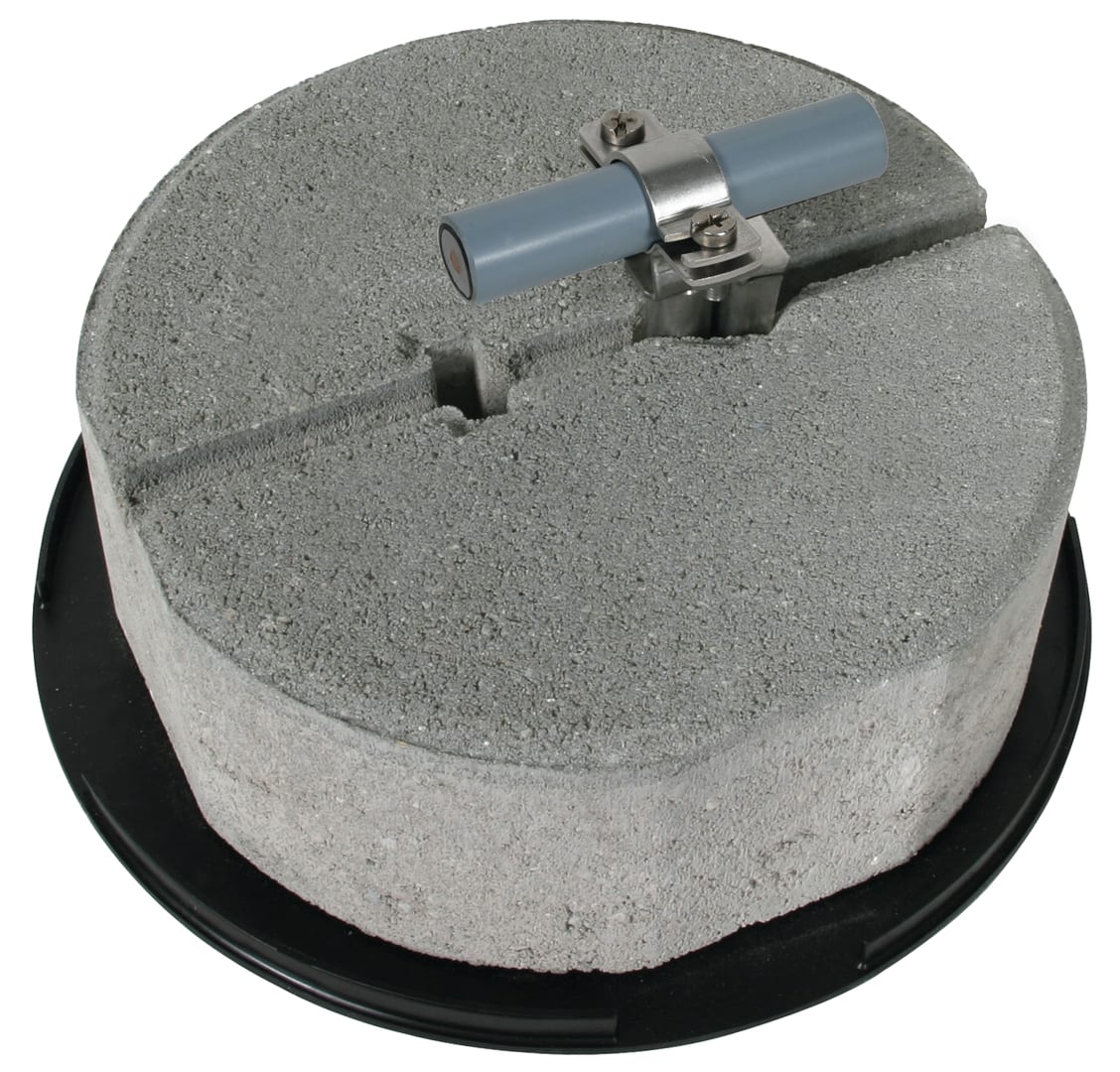 Staffa portafilo per tetti con morsetto a cavallotto a due viti in acciaio INOX per la posa della conduttura HVI power su tetti piani. Esecuzione con zoccolo in cemento e base di supporto per una conduttura di 20 / 23 mm (posa fissa della conduttura).