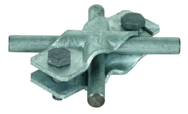 Morsetto SVP secondo CEI EN 62561-1, per collegamenti a croce ed in parallelo, parte superiore con asola aperta (non è necessario svitare completamente le viti). Esecuzione senza piastra intermedia.