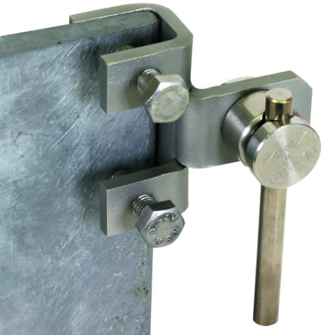 Morsetto di collegamento per travi d'acciaio secondo CEI EN 62561-1 per il collegamento su costruzioni d'acciaio. Esecuzione verticale con connettore KS, connessione longitudinale o trasversale.