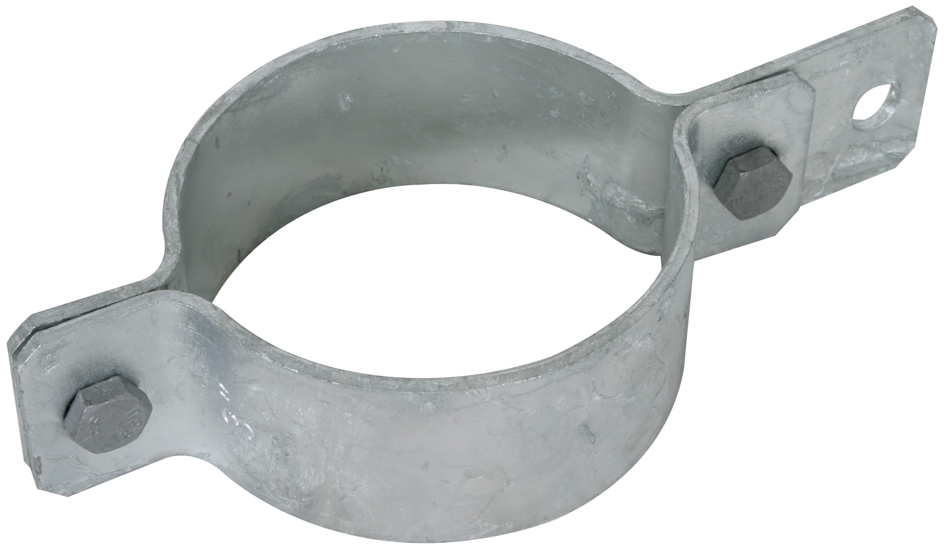 Collare per tubi protezione da fulmini secondo DIN-EN 62561-1 per l'integrazione di tubi nell'equipotenzialità di sicurezza e funzionale secondo DIN VDE 0100-410/540 ed equipotenzialità antifulmine secondo CEI EN 62305-3 (CEI 81-10/3). Esecuzione in Fe/tZn con viti M8, connessione per conduttori piatti con viti e dadi M10, per conduttori tondi 7-10 mm p. es. connettori KS o per la connessione dello spinterometro di protezione a pali di linee aeree su tetto.