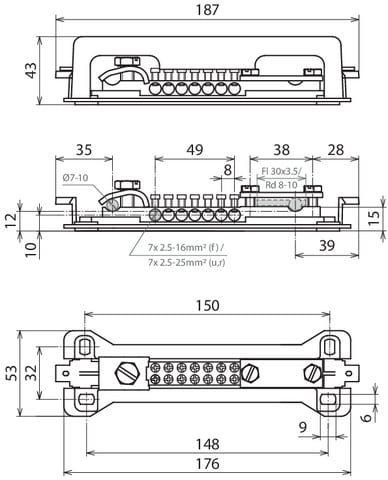 Anzahl der Anschlüsse Leitung bis 25 mm² starr: