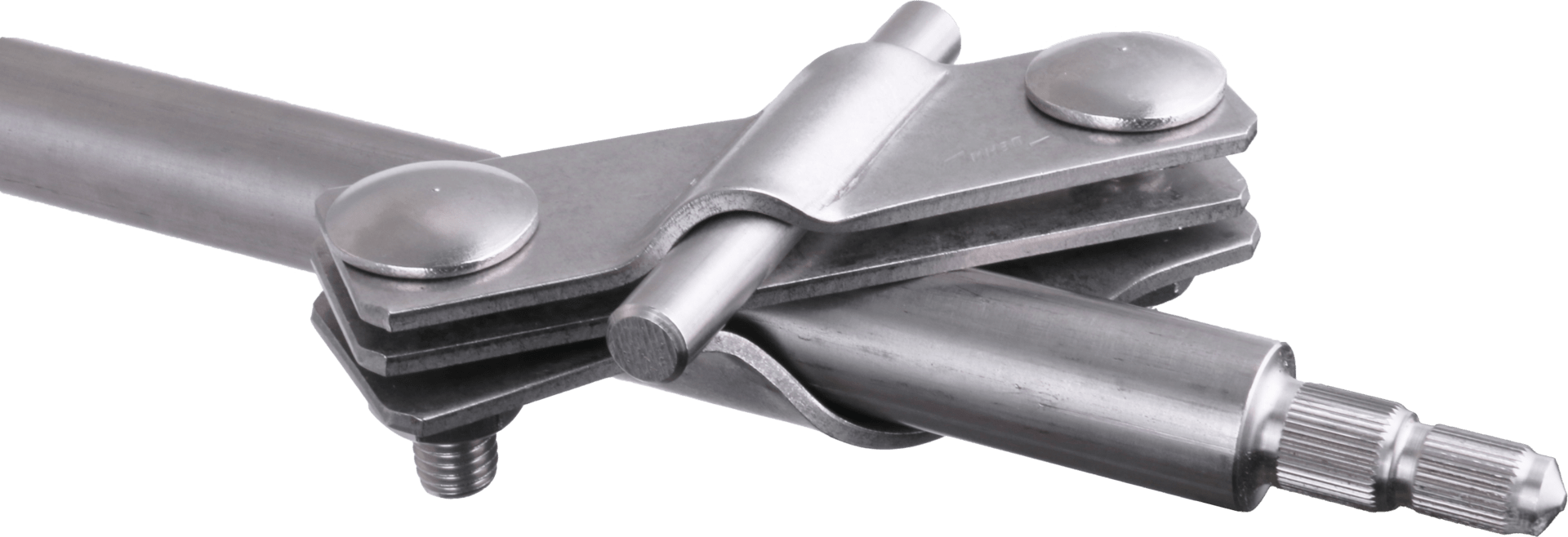 Collare di collegamento secondo CEI EN 62561-1 per la connessione di conduttori tondi, cordati e piatti su dispersori di profondità. Esecuzione obliqua con vite a testa piatta anche per conduttori di terra non tagliati.