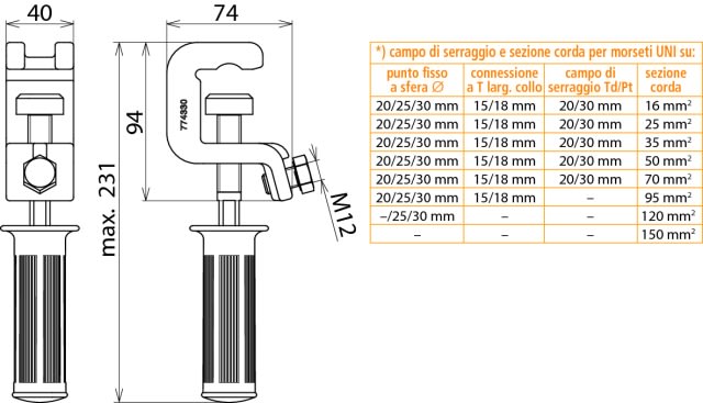 Für Seilquerschnitt - 16...120 mm²