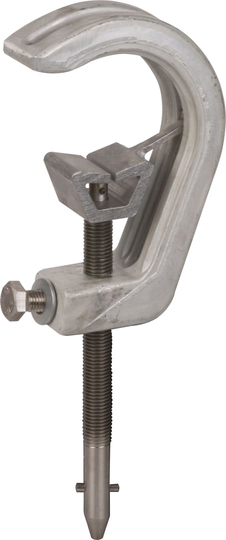 Pinza di fase a vite (con elevato campo di serraggio) con codolo lungo e innesto a baionetta come elemento di connessione lato fase secondo la norma EN/IEC 61230 (DIN VDE 0683-100) per linee aeree, adatta all'equipaggiamento di corde di messa a terra e di corto circuito. Antirotazione, esecuzione PK1.