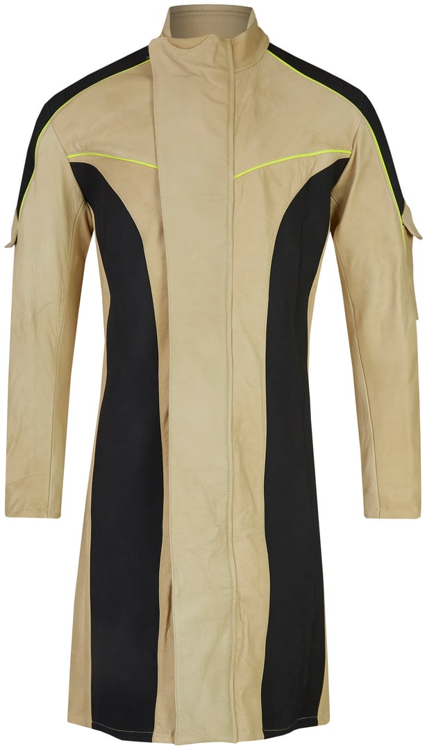 Giaccone di protezione collaudato contro gli archi elettrici DEHNcare APC con collo alto per lavori di manutenzione e riparazione su impianti elettrici. Certificazione secondo i requisiti del Regolamento DPI (UE) 2016/425 relativo alla commercializzazione di dispositivi di protezione individuale. Molto confortevole da indossare grazie all?impiego di cuoio traspirante. Box-Test secondo le norme IEC 61482-1-2, EN ISO 14116.