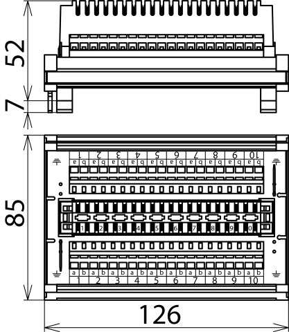 Striscia di sezionamento modulare per il montaggio su guida profilata, completa di striscia di sezionamento tipo 2/10, come morsetti a molla per la connessione variabile di fili. Adatta per l’innesto di scaricatori DPL e DEHNrapid LSA.