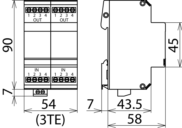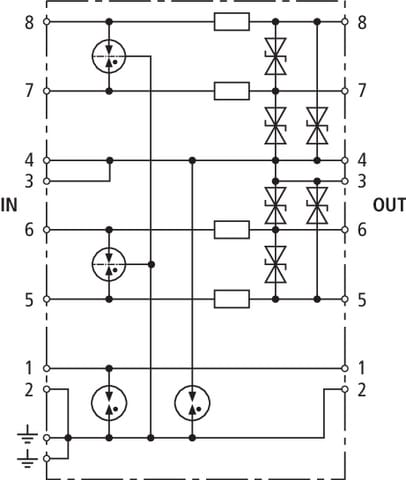 Limitatore per tante applicazioni, p.es. per interfacce simmetriche a 4 fili, tipo RS 485/422 oppure anche sonde di temperatura. A scelta possibilità della messa a terra dello schermo in modo diretto oppure indiretto e collegamento di un signal ground (SG).
