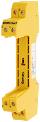 BLITZDUCTOR SP-elemento base come morsetto di collegamento in versione molto stretta, tetrapolare, universale per il collegamento di un modulo scaricatore con interruzione del segnale in caso di modulo di protezione non innestato. La messa a terra sicuradel modulo scaricatore viene stabilita per mezzo del piedino della guida profilata tramite un montaggio a scatto. Poiché non ci sono elementi di costruzione del circuito di protezione nell'elemento base, i lavori di manutenzione si limitano ai moduli di protezione.