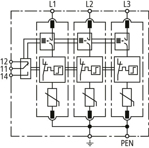 Limitatore di sovratensione multipolare DEHNguard M ACI, Tipo 2 secondo CEI EN 61643-11 (CEI 37-8) con combinazione integrata di commutatore spinterometrico ACI, costituita da elemento base e moduli di protezione innestati. Elevata sicurezza del dispositivo tramite il controllo dell’SPD con ""Thermo-Dynamik-Control"". Per la protezione da sovratensione per impianti elettrici utilizzatori in bassa tensione. Per l’impiego nel concetto di protezione da fulminazione a zone ai passaggi 0B – 1 e superiori.