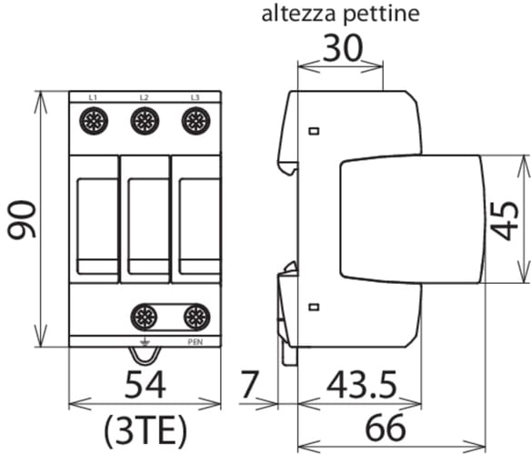 Limitatore di sovratensione modulare per reti TN-C (circuito 3+0) • Unità completa, pronta per il cablaggio, composta da elemento base e moduli di protezione innestabili • Coordinamento energetico nella famiglia di prodotto Red/Line • Elevata capacità discarica tramite potenti varistori all'ossido di zinco/ spinterometri • Elevata sicurezza dell’apparecchio tramite dispositivo di controllo "Thermo- Dynamik-Control"• Sostituzione semplice, senza attrezzi, del modulo di protezione tramite sistema di blocco e tasto di sblocco modulo • Provato contro vibrazioni e shock meccanico secondo EN 60068-2