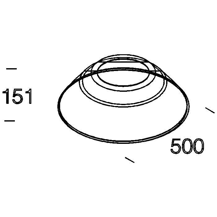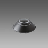 In lastra di alluminio, verniciatura bianca interna e nera esterna. Da applicare tra le base e il difussore. Adatta per globi: art. 1300 Ø380 - 1301 Ø320/380.