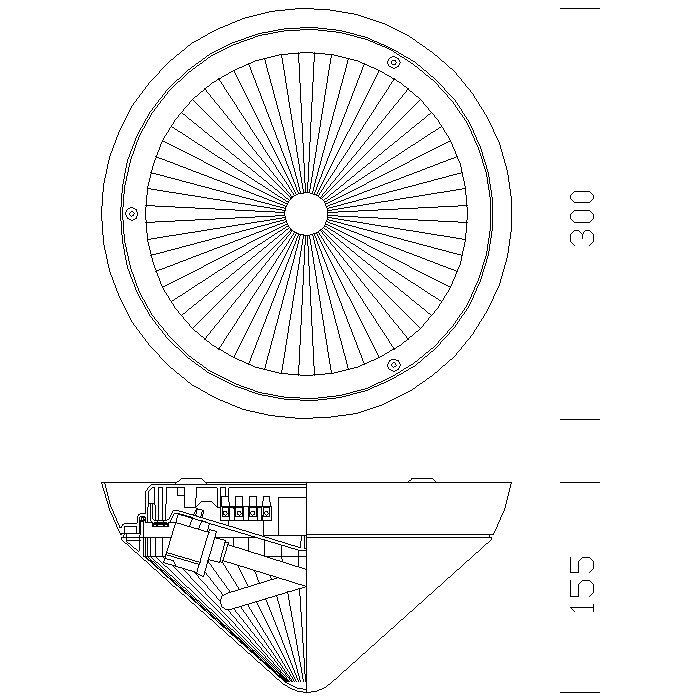 CORPO: In policarbonato infrangibile ed autoestinguente V2, stabilizzato ai raggi UV. DIFFUSORE: In policarbonato antiabbagliamento infrangibile ed autoestinguente V2, stabilizzato ai raggi UV, liscio esternamente antipolvere. RIFLETTORE: In alluminio lucido o policarbonato bianco. PORTALAMPADA: In policarbonato e contatti in bronzo fosforoso. Attacco G23; E27. CABLAGGIO: Alimentazione 230V/50Hz. Cavetto rigido sezione 0.50 mm² guaina di PVC-HT resistente a 90°C secondo le norme CEI 20-20 o cavetto rigido in silicone calza di vetro sez. 0.75 mm². Morsettiera 2P o 2P+T con massima sezione dei conduttori ammessa 2.5 mm². EQUIPAGGIAMENTO: Guarnizione in materiale ecologico. Passacavo in nylon f.v. diam. 1/2 pollice gas (cavo min. diam. 9 max diam. 12). NORMATIVA: Prodotti in conformità alle vigenti norme EN60598-1 CEI 34-21, sono protette con il grado IP65IK08 secondo le EN 60529. Installabili su superfici normalmente infiammabili. In doppio isolamento.