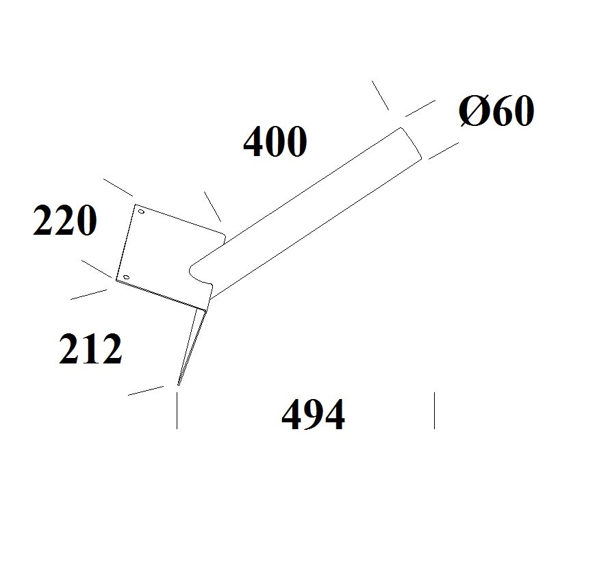 Attacco ad angolare in acciaio tropicalizzato. Permette l'applicazione su parete ad angolo. Attacco Ø 60. Inclinazione 15°.
