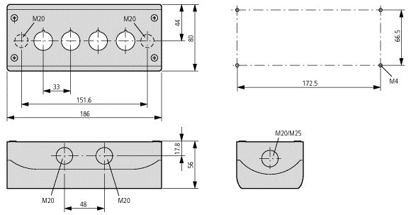 EATON - EAO216539 M22-I4 CUSTODIA 4 FORI, NERO /GRIGIO - 216539