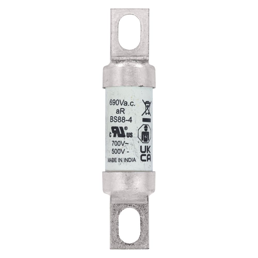 fusibile, cartuccia fusibile, corsa rapida, 45 A, AC 690 V, DC 500 V, BS88, 19 x 77 mm, aR, BS, terminali di collegamento laterali, protezione di sbarre collettrici DC, motori DC, convertitori/raddrizzatori di potenza e dispositivi di avviamento a bassa tensione, BS88-4, IEC 60269-4, potere di apertura 200 kA, Accessori opzionali portafusibile BH-0111
