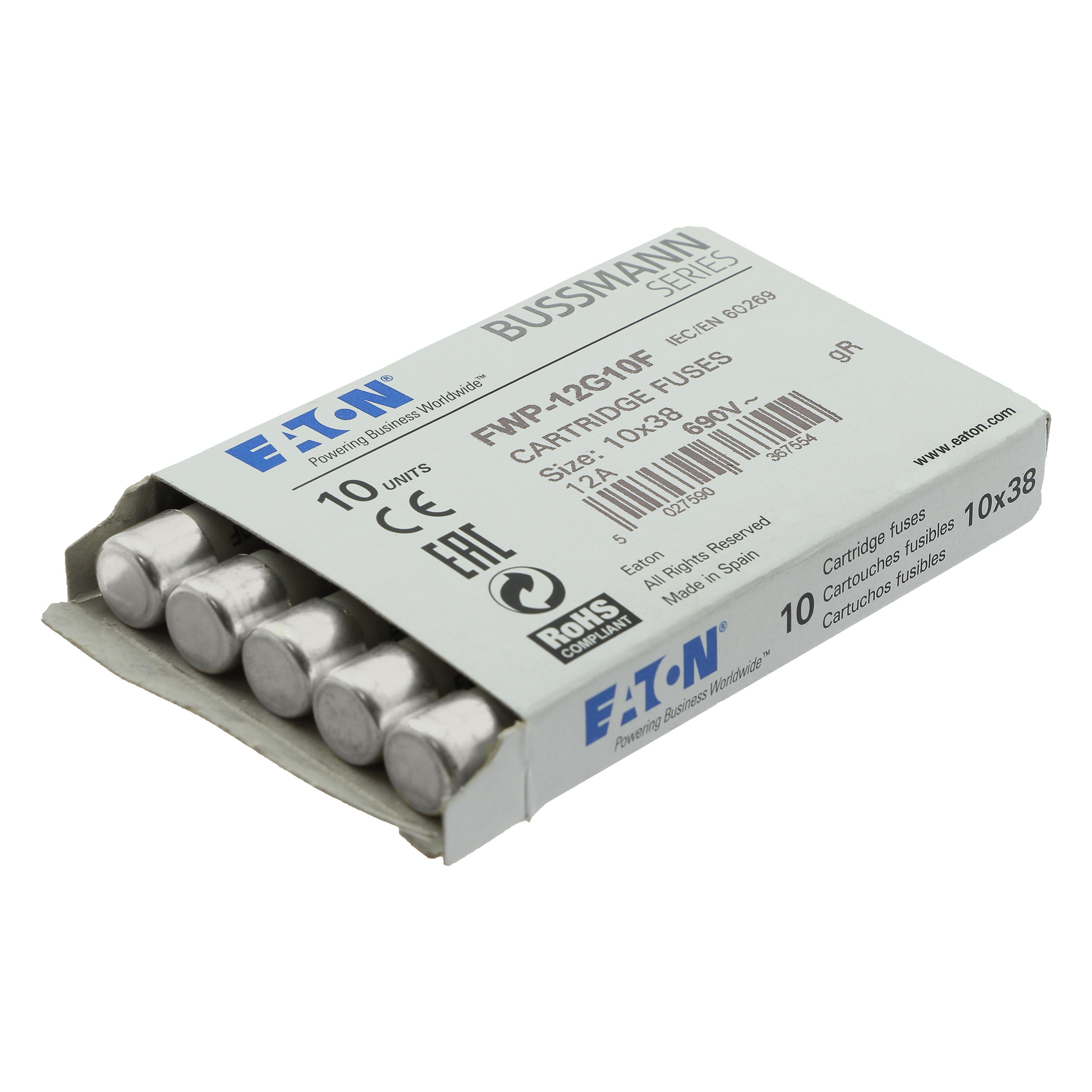 EATON - EAOFWP-12G10F FWP-12G10F 12A 690VAC CLASS GR 10X38MM F - FWP-12G10F