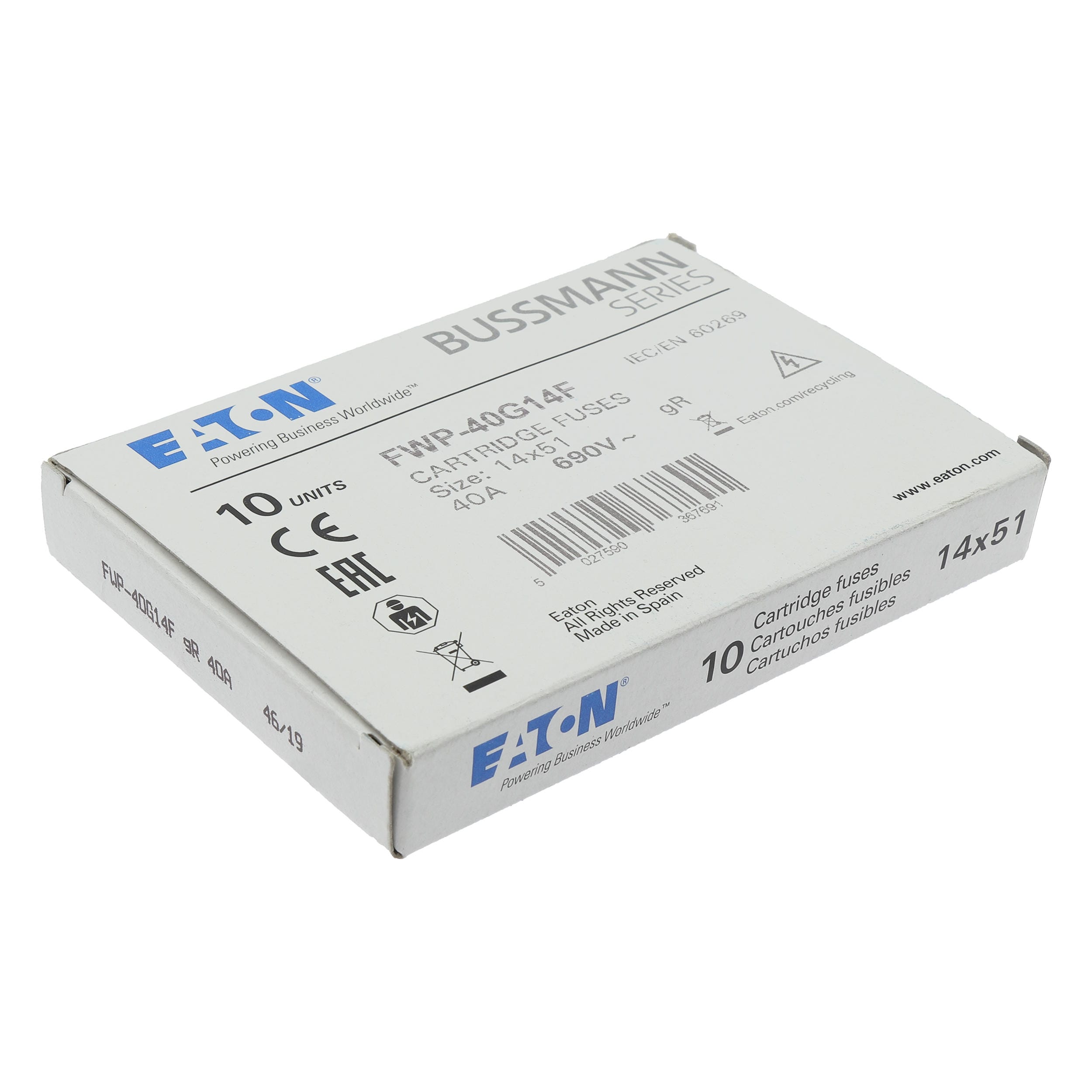 EATON - EAOFWP-40G14F FWP-40G14F 40A 690VAC GR 14X51 FUS W/O S - FWP-40G14F