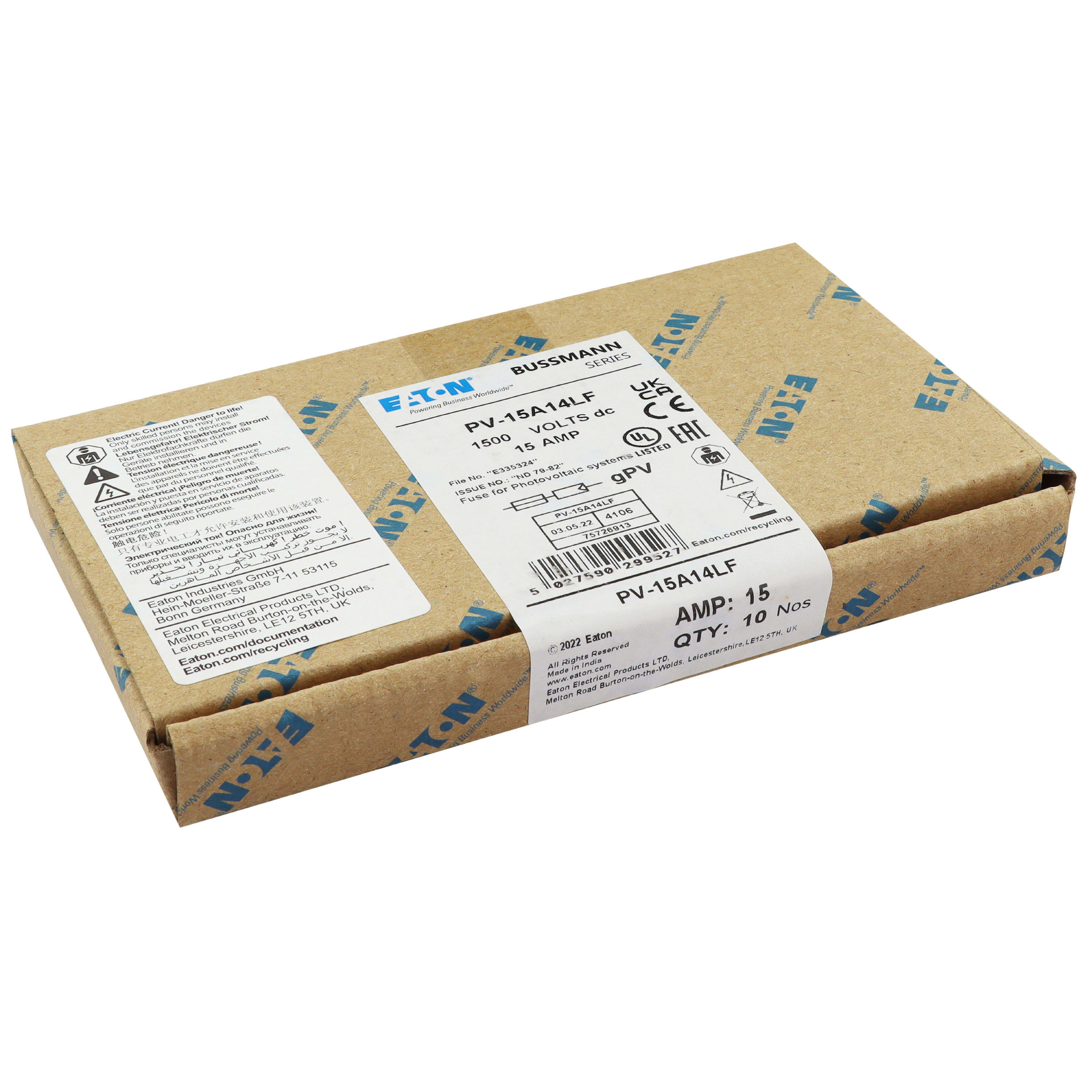 EATON - EAOPV-15A14LF PV-15A14LF 15AMP 1500V DC SOLAR FERRULE - PV-15A14LF