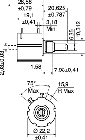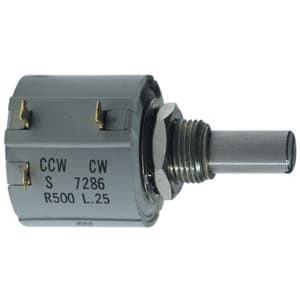Potenziometro di precisione a filo, 10 giri • Potenza: 2W a 70°C • Tolleranza: 5% • Resistenza di isolamento: 1000MOhm • Linearità: 0,25% • Temperatura di lavoro: -55°C÷125°C • Diametro perno: 6,35 mm