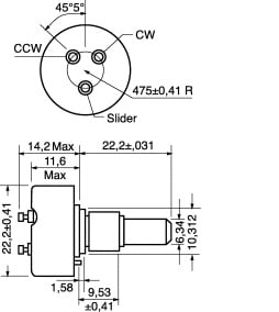 POTENZIOMETRO DI PRECISIONE IN PLASTICA CONDUTTIVA MONOGIRO. Con rotazione continua (senza fermo). POTENZA:1W a 70°C. TOLLERANZA:10%. RES.ISOLAM.:1000 MOhm. LINEARITÀ:1%. TEMP.LAV.STATICA: -65°C÷+125°C -65°C÷+125°CTEMP.LAV.DINAMICA: -40°C÷+125°C. -40°C÷+125°CDIAM.PERNO:6,35mm. PER MANOPOLE:15/9045 - 15/9050. MODELLO:6187. Resistenza: 2,0 KOHM.