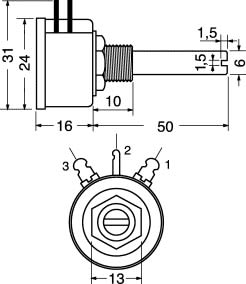 POTENZIOMETRI A FILO A VARIAZIONE LINEARE. MAX POT. A 25°C:2W. TOLLERANZA:±10%. ALBERO METALL.:Ø 6 mm. TENS. NOMINALE:250V. ANG. ROTAZ. EL.:265°±15°. TEMP. LAV.:-40°C÷70°C. MANOP.:15/1000 – 15/7000. MODELLO:PE200. Resistenza: 1,0 KOHM.
