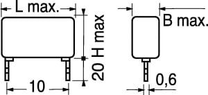 Articolo : 03/03318-00. Esecuzione a scatolino non induttivo. CORPO:resina epossidica. DIELETT.:film poliestere. CATEG. CLIM.:DIN 40040. TEMP. LAV.:-55°C÷+105°C. TOLLERANZA:±10%. PASSO:10 mm. Cap. Elettr. 100 NF 250V.