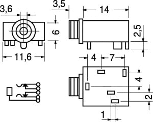 PRESA 3 POLI Ø 3,5 mm CON DOPPIO INTERRUTTORE. CORPO:pvc. CONTATTI:ottone. PER SPINE VOL.:4/3004.