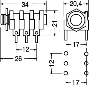 PRESA 3 POLI Ø 6,3 mm CONTATTI NORMALMENTE CHIUSI. CORPO:bachelite. CONTATTI:ottone nichel. TERMINALI:a c.s. e saldare. PER SPINE VOL.:4/3040.