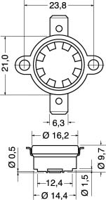 INTERRUTTORI TERMICI NORMALMENTE CHIUSI. Al raggiungimento della temperatura di intervento si apre il circuito automaticamente, ripristinandosi nella successiva applicazione. CONTATTO:normalmente chiuso. TENSIONE:250 V. PORTATA MAX:10 A. TEMP.NOM.:50°C÷185°C. CORPO:termoplastico. TOLLERANZA:± 3%. CON FASTON MASCHIO:6,35. PER FASTON:4/11520. COPRI FASTON:4/11530. Temperatura Intervento: 100 °C.