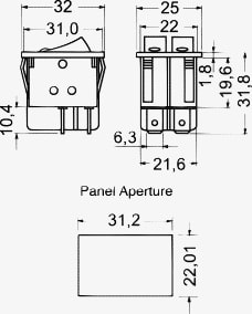 DOPPIO INTERRUTTORE LUMINOSO. PORTATA:16 A-250 V. CORPO:abs. TERMIN.:faston passo 6,35. PER FASTON:4/11520. COPRIFASTON:4/11530. Col.Tasto: Rosso/ verde.