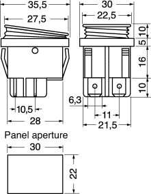 INTERRUTTORE BIPOLARE LUMINOSO RESISTENTE ALL’ACQUA. TENSIONE:220 V. MATER.:poliamide caric.vetro. COLORE CORPO:nero. CONTATTI:rame zincato. TEMP. LAV.:0÷125°C. GRADO PROTEZ.:IP 65. FISS. PANN.:autobloccante. TERMIN.:faston passo 6,35.