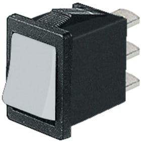 DEVIATORI UNIPOLARI MINIATURA. PORTATA:6 A - 250 VCA. CORPO:nylon rinf. vetro. CONTAT.:ottone nichelato. TERMIN.:faston passo 4,80. FISSAGGIO:autobloccante. PER FASTON:4/11525. COPRIFASTON:4/11560. Col.Tasto: Nero.
