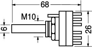 COMMUTATORI CON FERMO REGOLABILE. TENSIONE Dl PROVA:1000 V. CONTATTI:ottone dorato. PORTATA IN COMMUTAZIONE: 200 mA a 250 Vca 300 mA a 110 Vca 400 mA a 30 Vcc. CORPO:policarb. Ø 27 mm. PERNO:nylon Ø 6 mm. TERMINALI:c.s. PASSO:5,08 mm. N.Posiz.: 6.