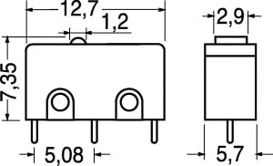 MICRODEVIATORE. PORTATA:1 A - 125 V. FORZA AZION.:140 gr. CORPO:pv. CONTATTI:ottone argent. TERMINALI:per C.S.