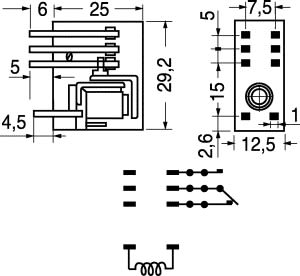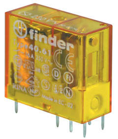 RELE' MINIATURA 1 SCAMBIO. MAX CORRENTE SUI CONT.:16 A. MAX TENSIONE SUI CONT.:250 V. TEMPO ECCITAZIONE:7 mS. TEMPO DISECCITAZIONE:3 mS. ISOLAMENTO:10³ M OHM. TEMPERATURA LAVORO:-40°C ÷ +85°C.