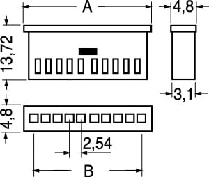 CONNETTORI VOLANTI FEMMINA SU FILA DOPPIA AMP SERIE MODU II. Pareti di polariz. e rit. Meccanico. PASSO:2,54 mm. CORPO:noryl nero con grado. di autoesting. 94-V1. PORTATA MAX:3 A. PER CONN.:5/5530 - 5/5580. CONTATTI:5/5750. PINZA A CRIMP. 98/80513ESTRATTORE:98/12928. Dim. A: 22,36mm. Dim. B: 17,78mm.