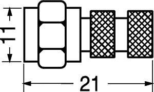 Spina F ad avvitamento. Il pin è costituito dal polo caldo del cavo. • Corpo in ottone nichelato • Ø del cavo: 6,8 mm • Impedenza: 75 Ohm
