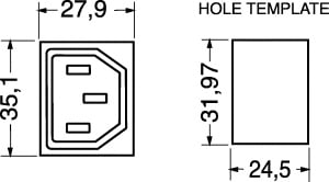 PRESA TRIPOLARE C13. FISSAGGIO:autobloccante. PORTATA:10 A - 250 V. CORPO:bachelite. CONTATTI:ottone nichelato. PER SPINE:13/790. Dim.Fast.: 4,8mm.