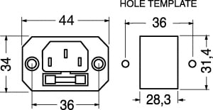 SPINA TRIPOLARE C14 CON PORTAFUSIBILE 5x20. PORTATA:10 A - 250 V. CORPO:bachelite. CONTATTI:ottone. FISSAGGIO CAVO:faston 6,35. PER PRESE:13/845. CAVI:6/300.