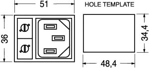 SPINA TRIPOLARE C14 CON DOPPIO PORTAFUSIBILE. FISSAGGIO:autobloccante. PORTATA:10 A - 250 V. CORPO:bachelite. CONTATTI:ottone nichelato. FISSAGGIO CAVO:faston 6,35. PER PRESE:13/845. CAVI:6/300.