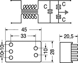 FILTRI ANTIDISTURBO. MONTAGGIO:c.s. CUSTODIA:plastica sigillata in resina epossidica. TENS. LAVORO:250 V CA. TENS. PROVA:1500 V CC. TEMP. LAV.:-25°C ÷ +85°C. Adatto per protezione monitor.