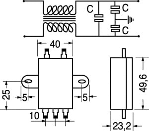 FILTRI EMI / EMC ANTIDISTURBO. MONTAGGIO:a telaio. CUSTODIA:plastica sigillata in resina epossidica. TENSIONE LAVORO:250 VCA. TENSIONE PROVA:1500 VCA. TEMPERATURA LAVORO:-25°C ÷ +85°C. Adatto per apparecchi industriali.