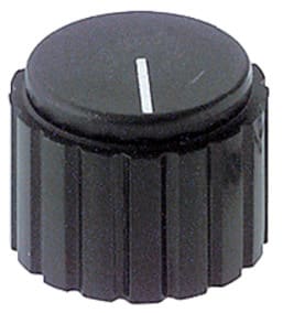 MANOPOLE CON INDICE. Innesto per perni Ø 6 mm bloccaggio mediante viti laterali. MATERIALE:pvc. CAPPUCCIO:alluminio nero opaco. Dim. D: 25mm.