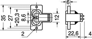 SPINA BIPOLARE CON INTERRUTTORE. CORPO:bachelite. CONTATTI:ottone nichel. PER CAVETTO:6/382.