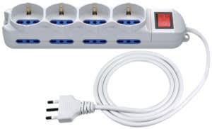 Presa multipla a 12 posti con interruttore. Dotata di interruttore luminoso. Con terra; base e coperchio in materiale termoplastico antiurto. Prese con alveoli di sicurezza schermati. Con possibilità di fissaggio. • Portata: 16A - 250V • Potenza max: 2500W